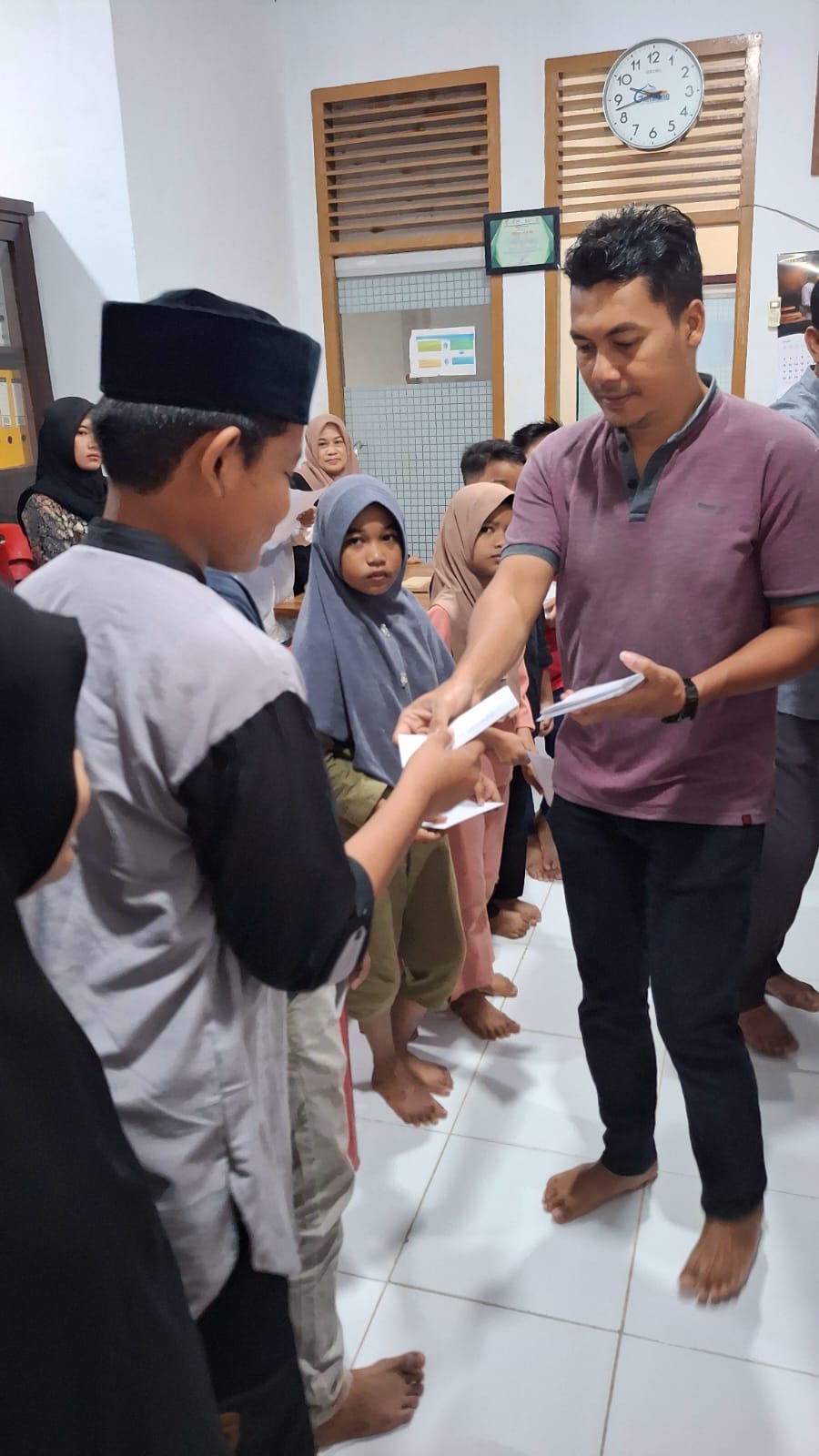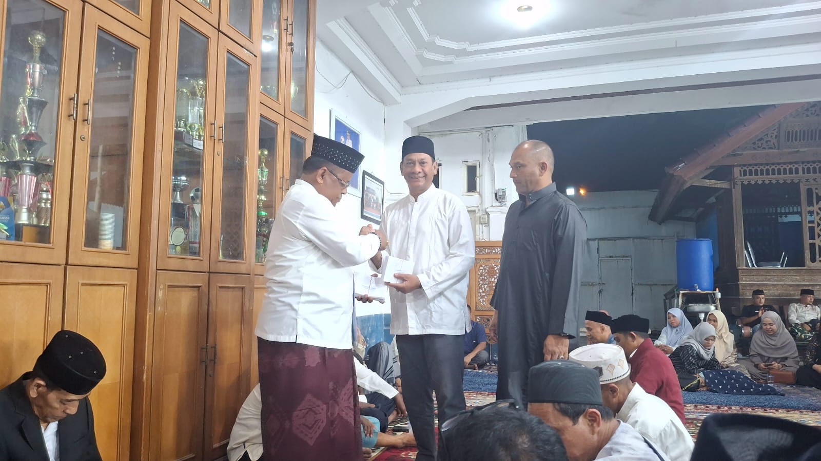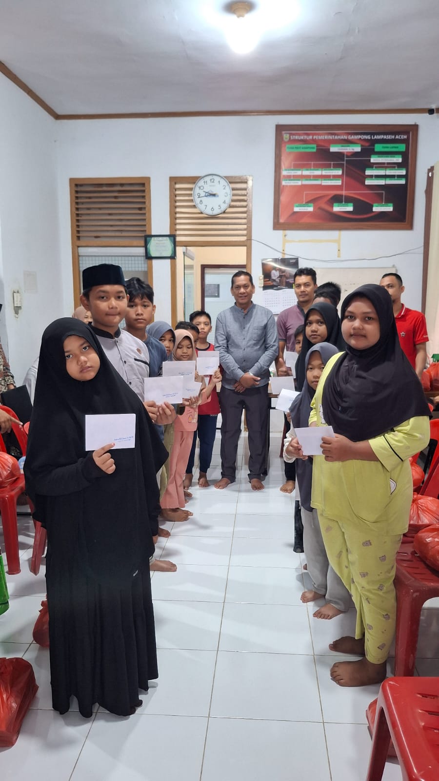 dan tak lupa pula Perangkat Kantor Keuchik Gampong Lampaseh Aceh menyerahkan santuan berupa amplop amanah dari Bpk Aminullah, SE, Ak,. MM.