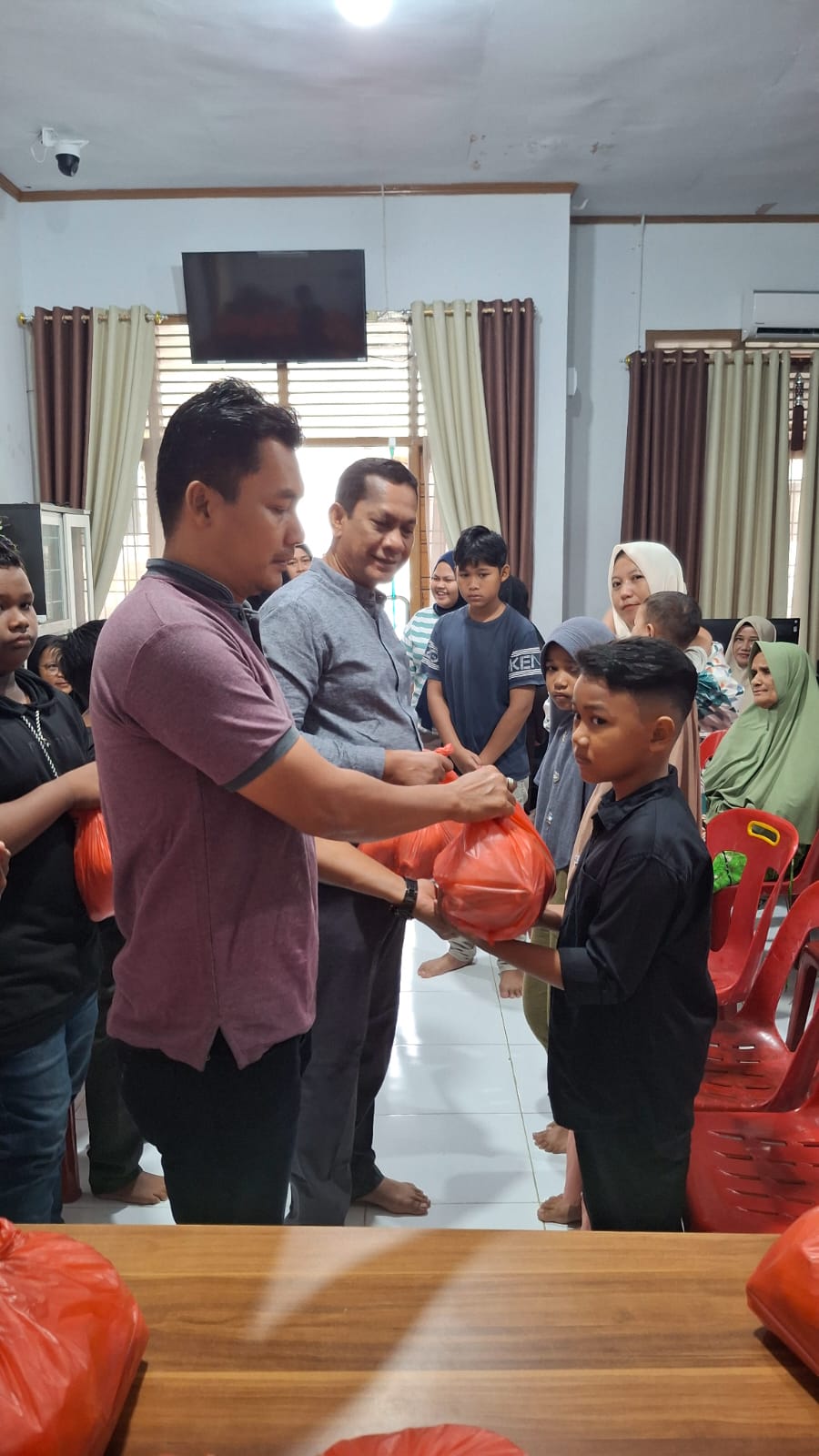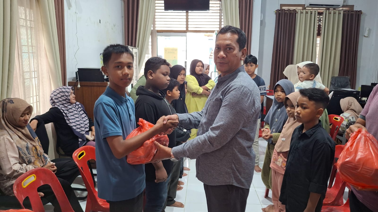 Perangkat Kantor Keuchik Gampong Lampaseh Aceh memberikan santunan anak yatim menjelang Bulan Suci Ramadhan 1447H/2026M